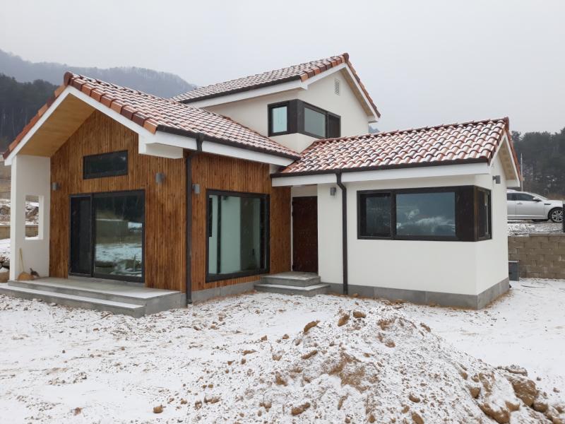◎ 실면적: 30PY ◎ 1층 면적: 23PY ◎ 2층 면적: 7.0PY ◎ 구조: 경량목구조 ◎ 지붕: 스페니쉬기와 ◎ 외부마감: 라하브라스타코(북미산), 적삼목M블럭 ◎ 내부마감: 바이오벽지, 강화마루 ◎ 창호: LG시스템창호